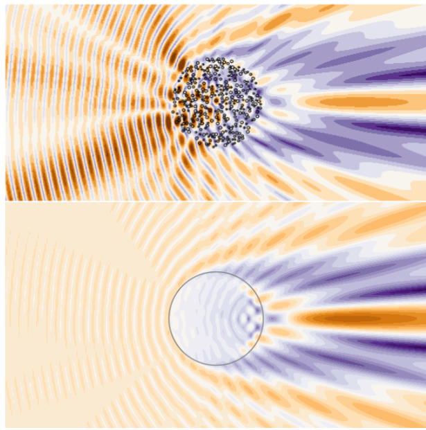 How do you take a reliable measurement of a material whose microstructure is random? When using wave scattering, the answer is often to take an ensemble average (average over time or space). By ensemble averaging we can calculate the average scattered wave and the effective wavenumber. To date, the literature has focused on calculating the effective wavenumber for a plate filled with particles. One clear unanswered question was how to extend this approach to a material of any geometry and for any source. For example, does the effective wavenumber depend on only the microstructure, or also on the material geometry? In this work, we demonstrate that the effective wavenumbers depend on only microstructure, though beyond the long wavelength limit there are multiple effective wavenumbers for one fixed incident frequency. We show how to calculate the average wave scattered from a random particulate material of any shape, and for broad frequency ranges. As an example, we show how to calculate the average wave scattered from a sphere filled with particles.